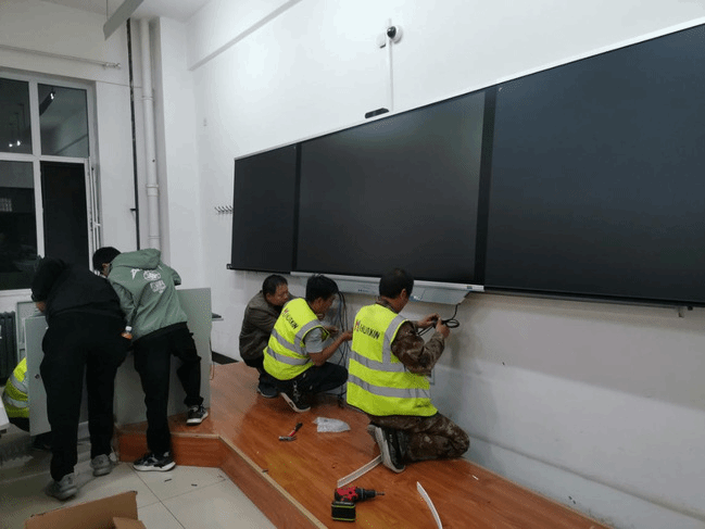 为不影响正常的教学活动,中秋国庆假期期间,信息管理中心(网信办)迅速组织开展项目施工工作。工作人员加班加点,抓进度、抢工期,高质高效推进项目建设,短时间内完成了温泉校区58台智慧黑板、61个宽屏幕布、昆仑校区37台教师机的更换升级工作以及文科实验楼5间教学机房的综合布线工作。