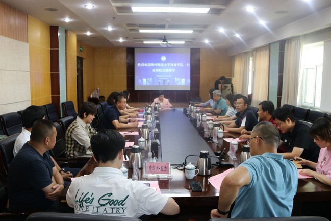 8月18日,陕西师范大学体育学院党委书记曲洪刚一行七人来我校体育学院座谈交流。陕西师范大学体育学院党委副书记、纪委书记王一喆,副院长郑传锋、张婧、水祎舟、刘芳,组织员、团委书记张媚,乌鲁木齐市教研中心教研员李伟,365英国体育学院全体领导班子和各系主任及组织员参加座谈交流。会议由体育学院党委书记高刚主持。