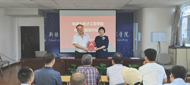 报告结束后,物理与电子工程学院党委书记李莉代表学院与刘伍明签订了《365英国上市公司官网天池特聘教授聘任协议》并颁发了特聘教授聘书。她希望刘伍明今后能加强对学院科研工作的指导,进一步推动学院学科建设和发展。