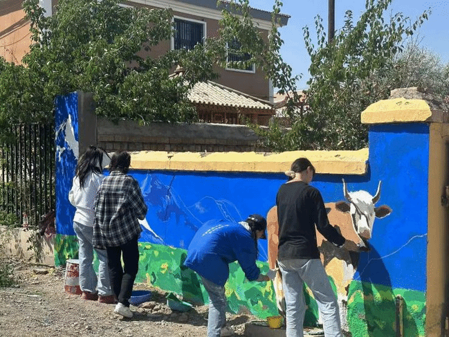 在本次实践活动中,美术学院师生充分了发扬吃苦耐劳精神,用一幅幅生动的艺术作品点缀了乡村亮丽风景。合胜村的村民们走上街头观赏佳作,纷纷向同学们竖起了大拇指。为天山脚下的美丽村庄增添了艺术性与故事性,也吸引了很多过往游客驻足拍照打卡。参加活动的学生纷纷表示,通过本次墙绘创作,充分发挥了自己的专业优势,实践能力也得到了进一步提升。
