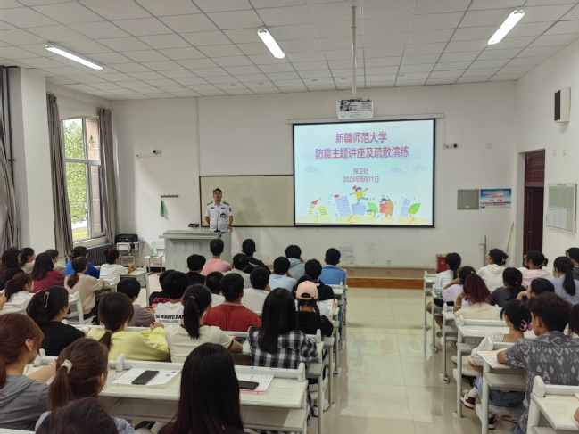 活动中,卫民安消防安全教育中心讲师安再尔进行了防震安全知识讲座,随后演练正式开始。随着第一次警报响起,参加演练的师生在教室内就地避险,将书籍或书包置于头顶保护头部,下蹲或伏在课桌旁边或课桌下面。第二次警报响起,师生们开展了紧急疏散,按照最近的路线迅速有序地疏散到图书馆前的广场上。随着各班集合清点人数,总指挥发出解除安全警戒口令并进行点评,演练活动圆满结束。