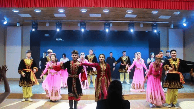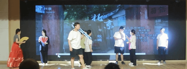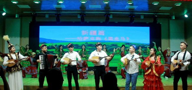 本次实践展演活动整体由五个篇章组成。音乐学21—3班展演的“曲艺山海—华北乐章”,通过戏曲、民歌、相声、舞蹈诠释华北地区传统乐舞曲艺精彩片段。第二篇章是由音乐学21—5班表演“梦回大秦—华中篇章”,讲述现代书生穿越到秦朝领略大秦乐舞,运用多种信息化技术进行了一场中华传统乐舞文化“跨时空对话”。第三篇章是由音乐表演21—6班带来的“秦淮人家—华南乐章”,十三名身着旗袍的女性演唱着《秦淮景》,把师生带进了战争史诗电影《金陵十三钗》,舞蹈《踩街游》展示了传统文化与现代流行的碰撞。第四篇章是音乐学21—4班表演的“大话西游—西北乐章”,整篇由两个行走在丝绸之路的商人角色串起,走过了陕西、甘肃、宁夏、青海、新疆,一路上跋山涉水有坎坷、有欢乐,带师生体验了不同地域的多彩文化,领略了丝绸之路的绝美风光。最后一个篇章由全体学生带来“多彩新疆”,同学们身着新疆各民族服饰,跳着刀郎舞、黑走马、麦西来普,共同感受新疆乐舞的奔放与欢乐。