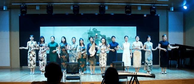 “中华优秀传统乐舞文化”智慧实践课程展演以中华优秀传统乐舞文化课程为基础,秉承“课程即实践”的教学理念,以智慧实践为目标导向,借助新文科思维,通过文化体验、文化理解、创意实践,集“教、学、编、导”为一体,推动创新主体同频共振、创新资源高效联动,落实培养“德艺双馨”的艺术人才,呈现出一场精彩的创新型、创意性传统文化实践展演,是音乐学院近年来积极探索根植于中华优秀传统文化课程的成果体现。