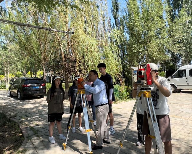 地理科学与旅游学院青年教师党员艾江带领学生实地测量