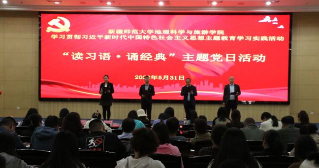为深入推进学习贯彻习近平新时代中国特色社会主义思想主题教育,创新主题教育理论学习形式内容,有效促进“三强班级”“三好宿舍”内涵式建设和“三进两联一交友”活动融情式发展,地理科学与旅游学院各师生党支部联合举办“读习语·诵经典”主题党日暨“三进两联一交友”活动。学院全体师生党员、“三进两联一交友”结对师生及“三强班级”“三好宿舍”学生代表共同参与。