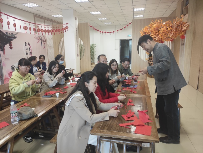 活动最后,全体党员来到昆仑尼山书院开展了“品茶传礼 茶语人生”茶文化体验活动和“岁月成诗 剪纸传情”剪纸体验活动。高级茶艺师方芳用图文并茂的形式,为大家讲解了茶的历史与发展、茶叶的分类、茶的保健功效等内容,并向大家展示茶的冲泡方法。著名剪纸艺术家林贵福为大家讲解了中国传统民间剪纸艺术的历史、风格和表现形式,进行了剪纸技巧的现场演示,手把手向在座的党员们传授剪纸的基本技巧,大家一起动手,剪出了一幅幅剪纸作品。