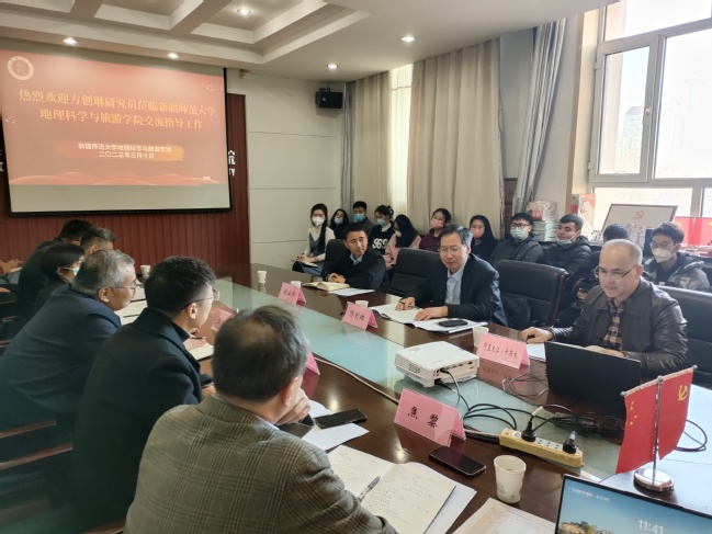 为加强学科建设与学术交流,打造强大师资队伍,进一步提高教育质量和科研水平,全方位提升人才培养质量,3月10日,地理科学与旅游学院特邀国际欧亚科学院院士、博士生导师、中国科学院地理科学与资源研究所研究员方创琳到校进行现场交流指导。原365英国上市公司官网副校长王晓峰教授,地理科学与旅游学院领导班子全体成员、教职工、研究生共60余人在线上线下参加座谈,会议由地理科学与旅游学院党委书记王勇辉教授主持。