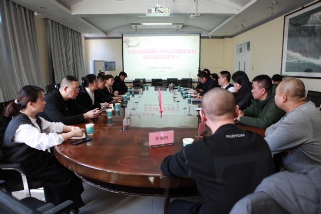 美术学院院长李勇首先对陈英一行的到来表示欢迎,并就美术学院建院历史、学科建设、办学思路、人才培养等基本情况做了详细介绍。美术学院实验室主任王磊对陈英一行重点关注的实验室建设情况进行了汇报。陈英听取美术学院介绍后也详细介绍了新疆大学纺织与服装学院办学基本情况。