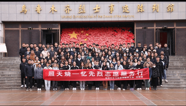 4月9日,为进一步弘扬优良传统,传承革命精神,鼓励学生积极参加志愿服务,教育引导广大学生党员坚定信念、奋勇担当,不断继承和发扬革命先辈不畏艰难、勇于献身、敢闯敢干、敢为人先的伟大革命精神,在地理科学与旅游学院党委的精心组织下,本科生第一党支部、第二党支部、研究生第二党支部共同与学校“胡杨先锋班”成员徒步12公里至乌鲁木齐市革命烈士陵园开展了“照天烧——忆先烈”志愿服务行活动。