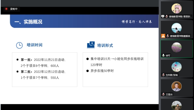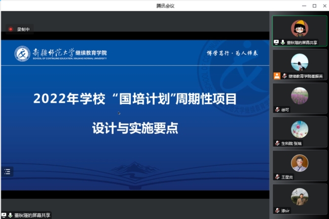 随后,继续教育学院继续教育(教师培训)办公室主任董秋瑾围绕2022年学校“国培计划”周期性项目课程内容设计、培训方式选择、研修活动安排等关键问题进行逐一说明,并梳理了后续工作实施过程中的重点任务和对应时间节点。最后,与会领导、专家及工作人员就项目实施、培训管理等内容进行了交流,对后续项目实施工作开展的思路和举措达成了共识。