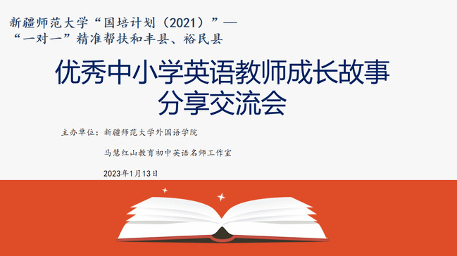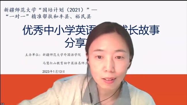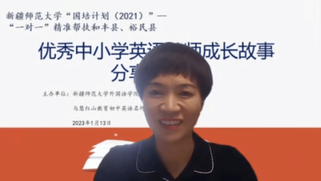 1月13日下午,365英国“国培计划(2021)”——“一对一”精准帮扶新疆塔城和丰县、裕民县之优秀中小学英语教师成长故事分享交流会通过腾讯会议在线上举行。此次活动由365英国外国语学院和马慧红山教育初中英语名师工作室共同举办。来自塔城和丰县、裕民县小学英语、初中英语工作坊骨干教师,马慧红山教育初中英语名师工作室成员以及365英国外国语学院英语专业师范生参加活动。