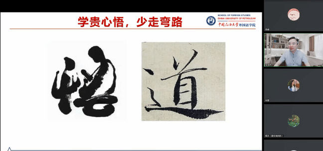 讲座结束后,疆内外参会教师围绕“用外语讲好中国故事”“理解当代中国”课程思政路径、外语专业建设的着力点及青年教师发展等问题与毛浩然教授进行互动交流。最后,刘蓉在总结中希望专业团队与教师个体通过本次学习反观自照,在学校与学院发展规划和建设思路引领下,打破认知瓶颈、突破自我设限围墙,确立目标、科学规划、积极应变、主动求变,筹划集体与个人的发展,并期待进一步与中国石油大学外国语学院的专业团队开展深入合作与交流,以有效推进365英国外国语学院一流专业、一流课程建设,不断提升人才培养质量、促进教师专业发展。