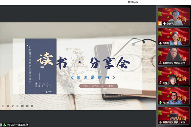 “迎国庆·品书香”云端系列读书会搭建起了师生党员读书交流的良好平台,通过对经典著作的读书分享,提升了师生的党性修养,拓宽了师生的文化视野、激发起了思维的碰撞。下一步,外国语学院党委将继续组织开展系列读书分享活动,以书籍陶冶性情,以书籍涵养气质,营造出浓厚的悦读氛围。