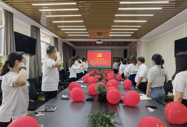 为热烈庆祝中国共产党成立101周年,迎接党的二十大胜利召开,进一步弘扬伟大建党精神,激发党员爱党爱国的深厚情感,强化全体教职工推动高质量发展的使命和担当,7月1日下午,继续教育学院党总支在昆仑校区教学主楼311会议室开展了“喜迎二十大,奋进新征程”主题系列活动,活动内容主要包括重温入党誓词、我把心声献给党、“党员服务先锋岗”授牌仪式、过政治生日,话初心使命、“党课开讲啦”。主题活动由党总支宣传委员孟祥瑞主持。