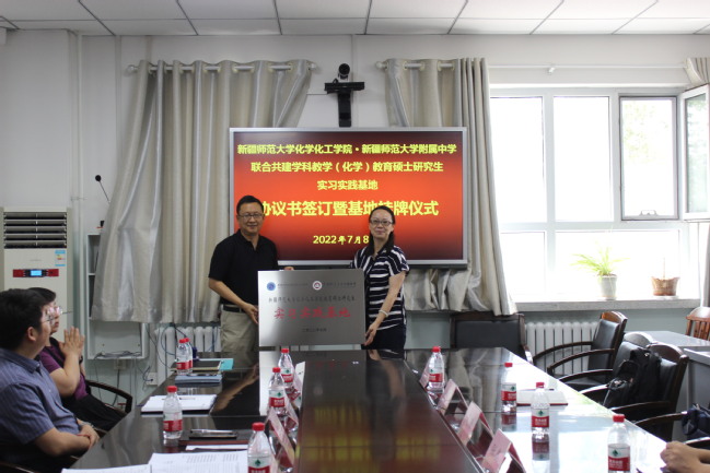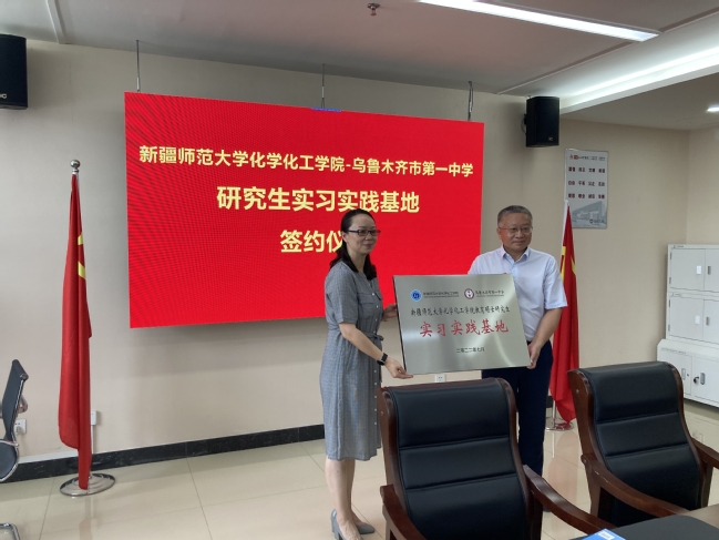 7月8日,化学化工学院学科教学(化学)教育硕士研究生实习实践基地签约挂牌仪式分别在乌鲁木齐市第一中学和365英国附属中学举行。两所中学校领导、相关人员,365英国研究生处处长周珊,组织部副部长、化学化工学院党委书记张鑫,化学化工学院党委副书记、院长关明,副院长罗时玮,副院长阿布都热西提∙阿布克力木、学位点负责人曾竟以及教法教研组组长董玲出席仪式。