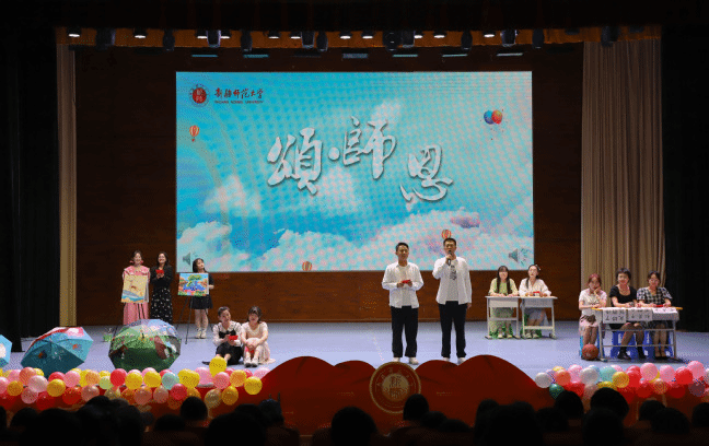 晚会分“展·未来”、“忆·青春”、“颂·师恩”三个篇章进行,节目精彩纷呈,充分展现了学前教育专业学生们的专业素养和青春风采。晚会在悠扬动人的歌曲快闪中拉开帷幕,歌手们从观众席缓缓走向舞台,台前歌声阵阵,台下星光点点。开场舞《万疆》的表演者,用一折红扇、一袭长袖展现祖国的繁荣景象。在“展·未来”篇章中,学前教育的同学们发挥所学、融入所思,带来了极具专业特色的节目《种子》《小报童的歌》等舞蹈生动形象,充满哲思;儿童剧《跑跑镇》《神奇糖果店》的表演活泼可爱,童趣盎然;还有《我要的》《遇见》等歌曲的演唱,清新悠扬、绕梁不绝;在“忆·青春”篇章中,姑娘们身着鲜亮的民族服饰,伴随着音乐翩然起舞,带来了一曲热情满满、张力十足的《纳曼干的姑娘》,还有青春洋溢、活力四射的舞蹈《奔跑吧!青春》,一首深情感人的《蓝宝石》伴随吉他的旋律萦绕在老师和同学们的耳畔;在“颂·师恩”篇章中,由2022届毕业生带来了一首感情真挚的诗朗诵《我想,明天以后》,回顾大学的点点滴滴,表达对老师们最真诚的感恩。
