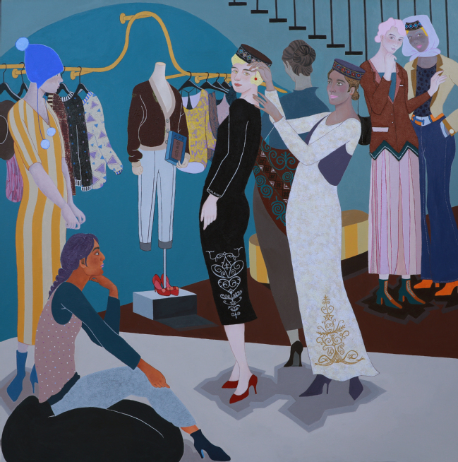 赵俊 《古丽仙学姐的服装店》,油画,180×180cm,2021