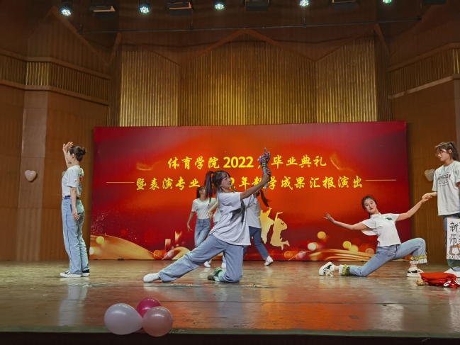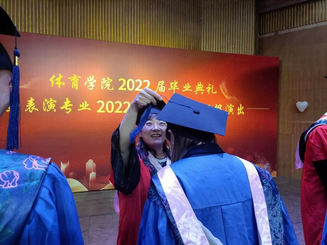 5月22日下午,体育学院2022届毕业典礼暨表演专业教学成果汇报演出在教学主楼二楼音乐厅隆重举行,毕业典礼由学院党委书记杨晓蓉主持。在2022届毕业生纪念短片中全体师生重温了过往岁月,体育学院党委副书记、院长庞辉为毕业生送上满载全院教师深情的临别赠语,辅导员爱尔兰为毕业生送上一份特殊的离别祝福。毕业生代表在发言中,代表全体2022届毕业生回忆了四年大学生活中的点滴,并向学校及老师们表达了不舍和感谢。在学士学位授予仪式中,师生微笑、握手、拨穗、授证、合影……每一个瞬间都见证着学子们人生中最难忘的时刻。