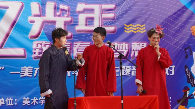 一场派对忆往昔。5月22日美术学院开展“拾忆光年·致青春与梦想”2022届毕业主题音乐派对,各毕业班级通过歌曲、舞蹈、相声等形式表达对母校及师生情谊的不舍和对未来的美好祝愿。