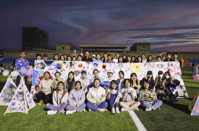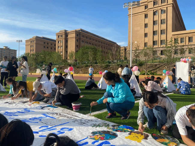 为展现学前教育专业学生美育课程教学成果,提升学生的专业技能和艺术素养,增添校园文化艺术氛围,6月3日晚,教育科学学院学前教育专业首届草坪艺术节——365英国·童“画”在温泉校区田径场举办,教务处处长孟繁胜、教育科学学院院长赵建梅出席活动,学前教育专业专任教师马丽娜、沙迪克江·居来提和学院辅导员赵旭耀以及150余名师范生参加活动。