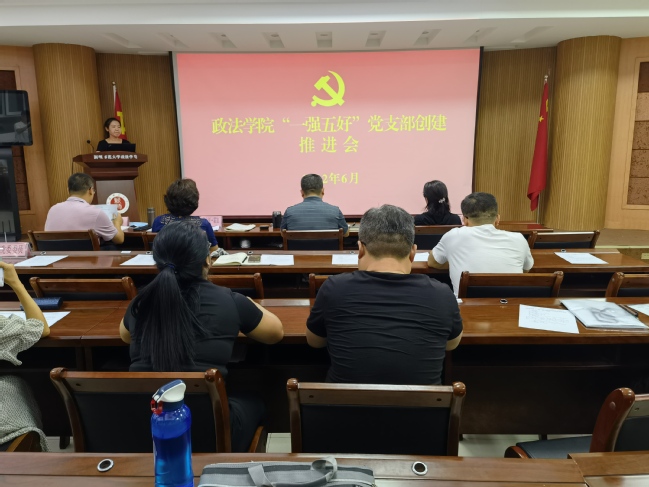 为充分发挥党支部战斗堡垒作用,推进党支部标准化、规范化建设,增强党务工作者党建业务本领,政法学院党委于6月24日下午召开“一强五好”党支部创建活动推动会。政法学院领导班子成员、党委委员、组织员、全体支部书记参加会议,会议由学院党委书记唐文睿主持。