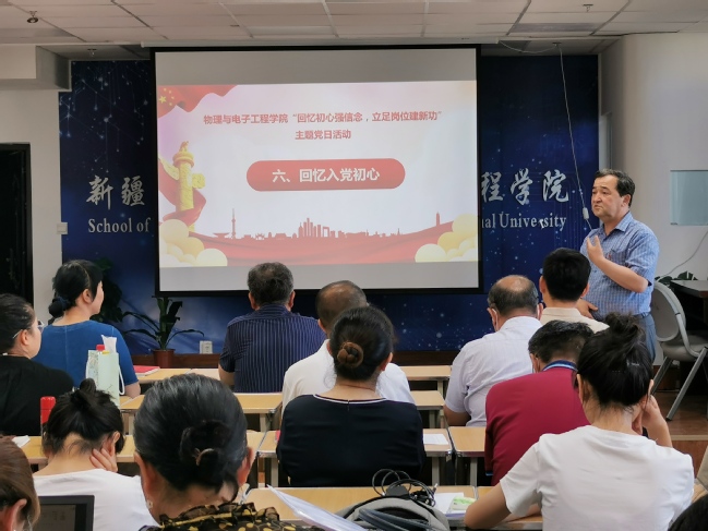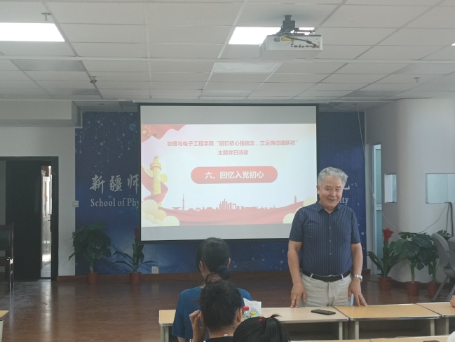 教师第一党支部艾尔肯·斯地克、教师第二党支部巴哈德尔·肉孜老师向大家分享了自己的入党初心。他们分别从不同角度讲述了自己当初入党时的历程和入党后忠诚担当、履行党员责任、全心服务师生的故事。