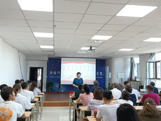 党委书记李莉为全体党员教师讲授了主题为“弘扬脱贫攻坚精神,凝聚立德树人力量”的专题党课。她用生动鲜活的事例和饱含深情的语言,为大家讲述了在莎车县亚喀艾日克乡亚喀艾日克村的驻村故事。当了解到李莉通过开办图书馆、小画室和开展“七点半课堂”“周末假期小课堂”等方式,帮助村里青少年丰富业余文化生活、提升国语水平,不断铸牢中华民族共同体意识的举动时,老师们无不因她用心践行文化润疆、用情助推乡村文化振兴的事迹而深受感动,纷纷表示会在今后的工作中时刻谨记共产党员的初心使命,在教书育人的岗位上不断强化责任与担当、使命与奉献,砥砺前行。