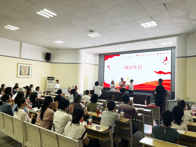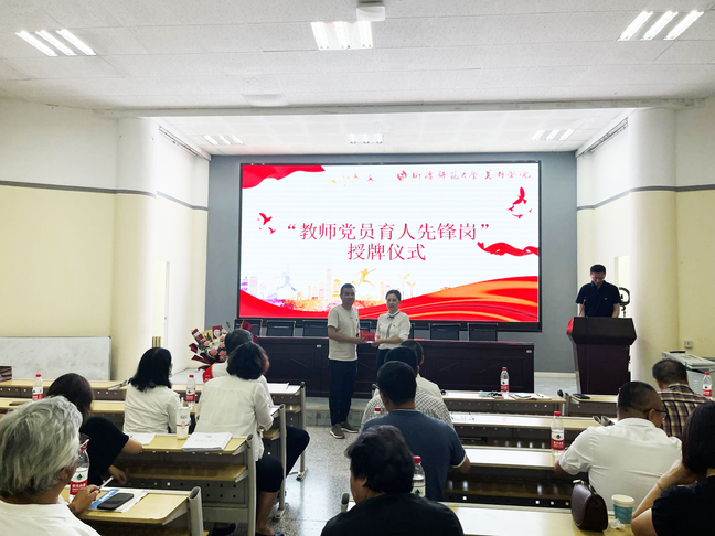 党课结束后,王凡带领全体党员教师重温入党誓词,为6月和7月入党的党员赠送“政治生日”贺卡和礼物,并为他们过了集体“政治生日”。美术学院党委副书记、纪委书记白丽艳为2022年“党员育人先锋岗”获得者王磊进行授牌,并寄语他在今后的工作中始终牢记“一个党员就是一面旗帜,一个岗位就是一份责任”,立足岗位作奉献、争先创优当模范,不断创造新业绩,更好地发挥先锋模范作用。