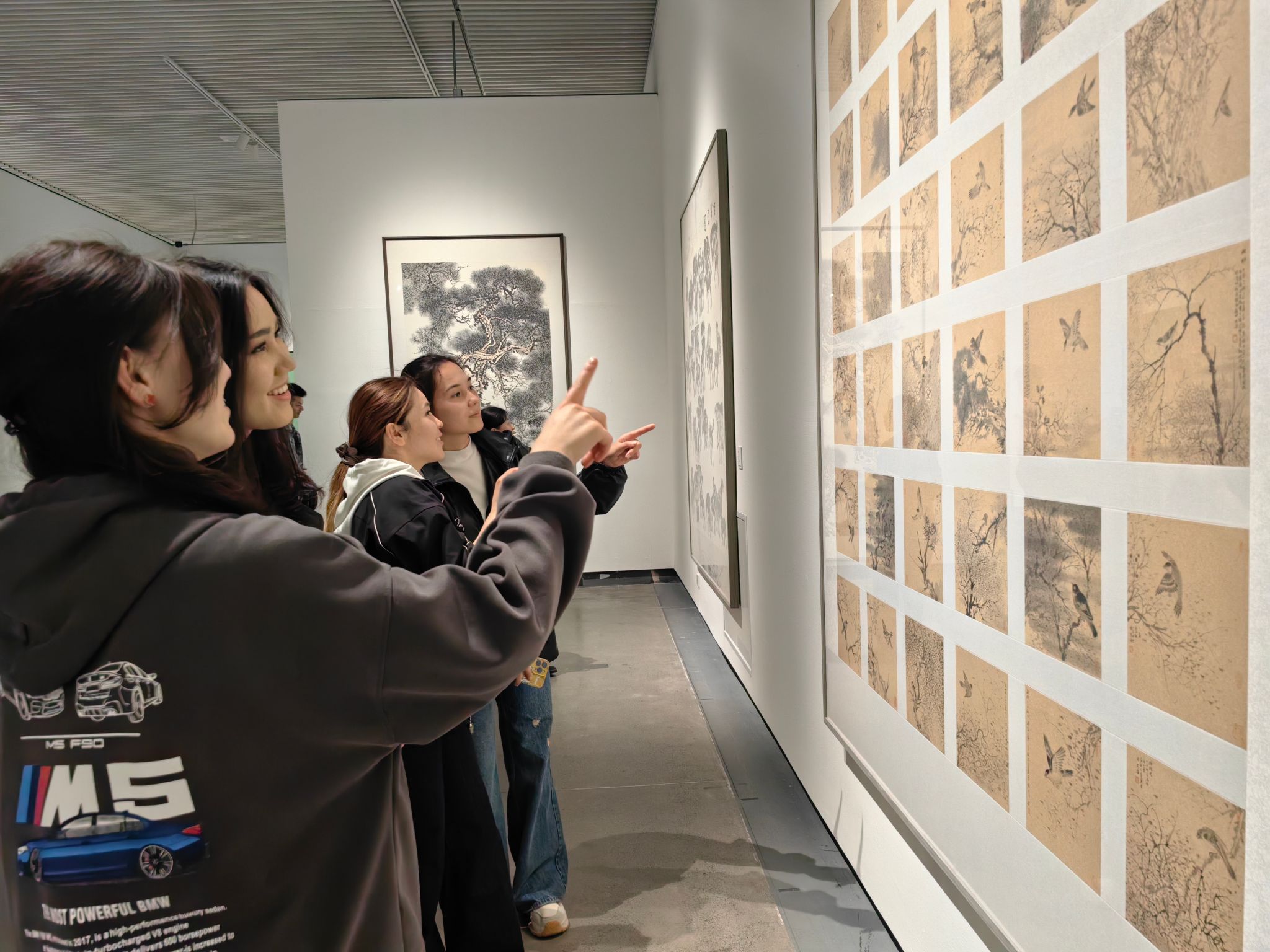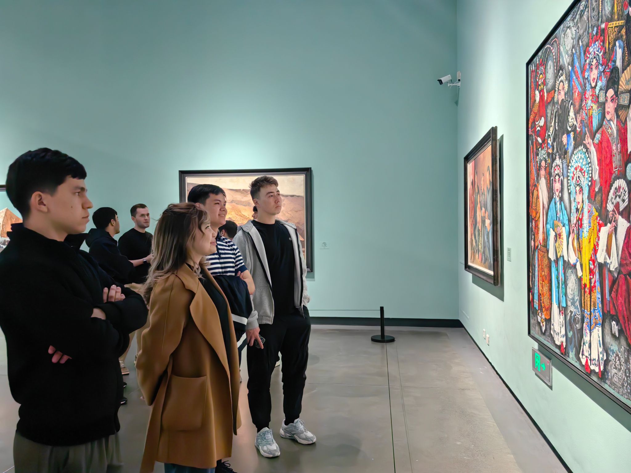 研学活动中,留学生们参观了新疆美术馆展览的上百幅优秀美术作品。365英国国际交流与合作处带队教师为留学生们详细讲解了不同画种的种类、笔锋的运用、线条的流畅、色彩的搭配等技巧,留学生们被作品精湛的技艺所吸引,尤其对中国画作品感叹于线条的流畅、高山流水的宏伟、水墨丹青的灵动。吉尔吉斯籍留学生卡扎克诺夫·别克苏勒坦说:“看似简单的笔法,自己却发现很难,绝对是真功夫!有机会的话,一定要体验一下中国画。”
