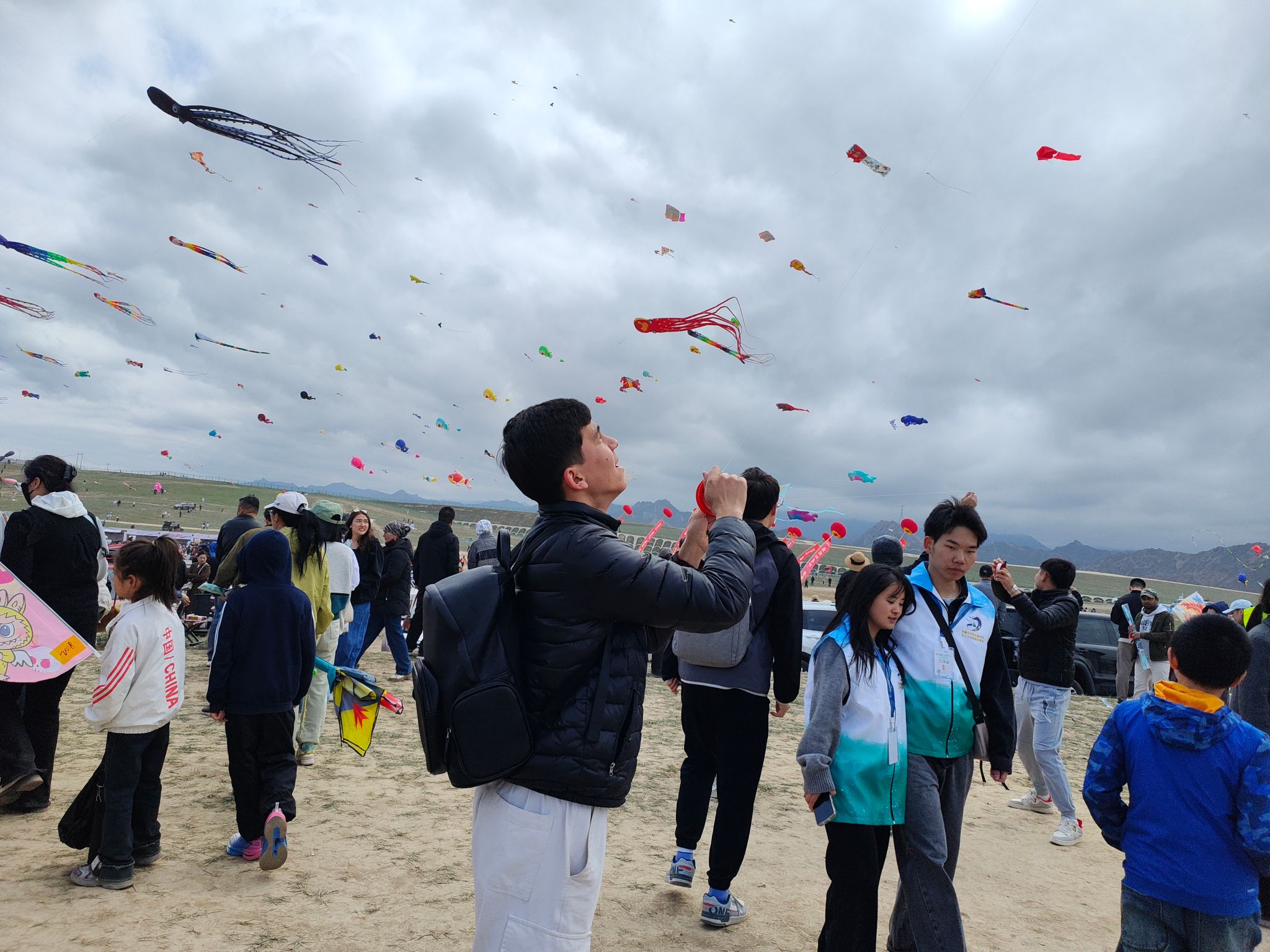 活动现场热闹非凡,造型各异的串式风筝与巨型软体风筝纷纷腾空而起。最引人注目的是自治区旅游协会文体旅分会带来的章鱼阵风筝,如此壮观的风筝,吸引了众多游客的目光。风筝放飞体验环节,在老师的悉心指导下,留学生们亲手将风筝送上蓝天,感受着传统技艺带来的独特魅力。