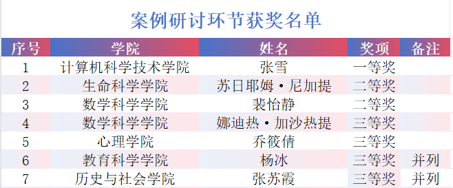 经过激烈角逐,最终评选出案例分析、谈心谈话双赛道一等奖2名、二等奖4名、三等奖7名。