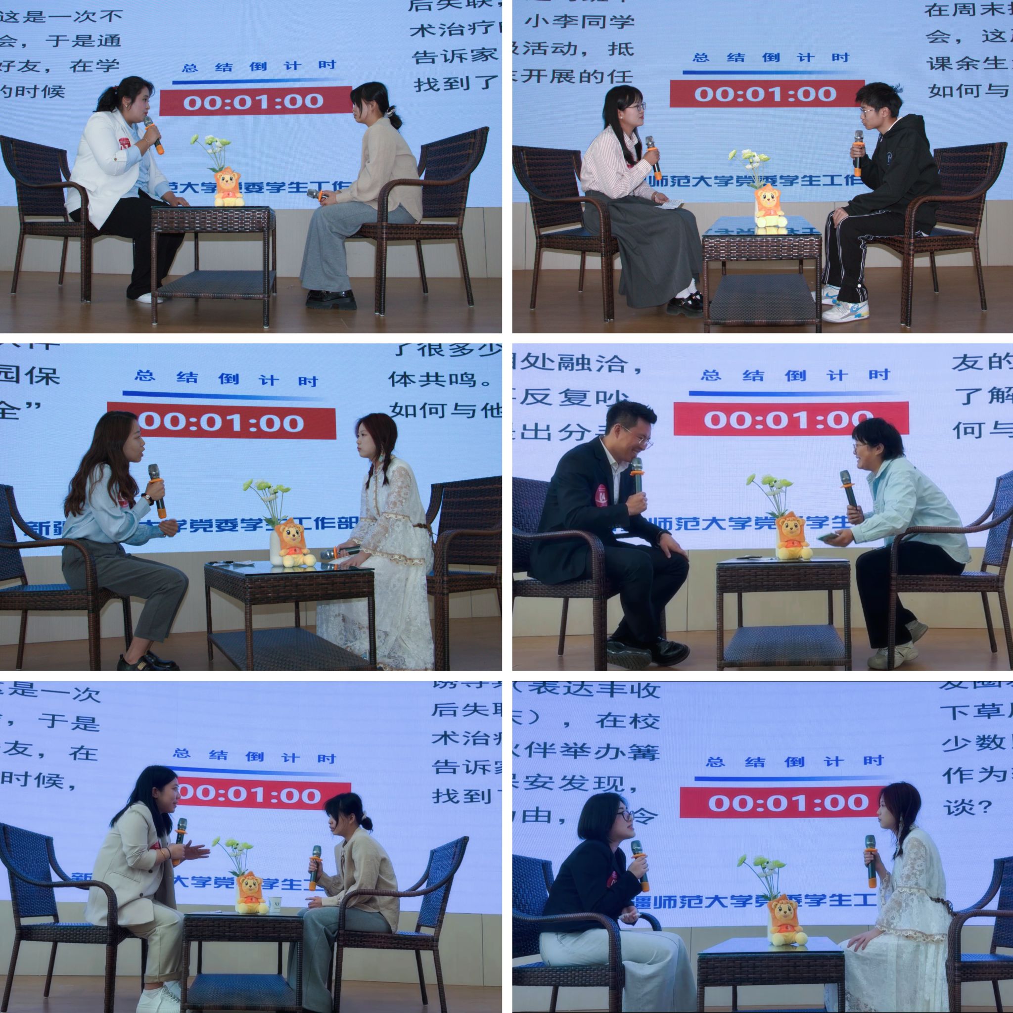 谈心谈话环节通过学生演员表演情景模拟还原工作场景,涉及心理疏导、职业规划、恋爱观、突发事件应对等多类内容,辅导员们机智应对充分展现出倾听共情、问题分析、沟通引导、危机干预及严守保密等核心能力。
