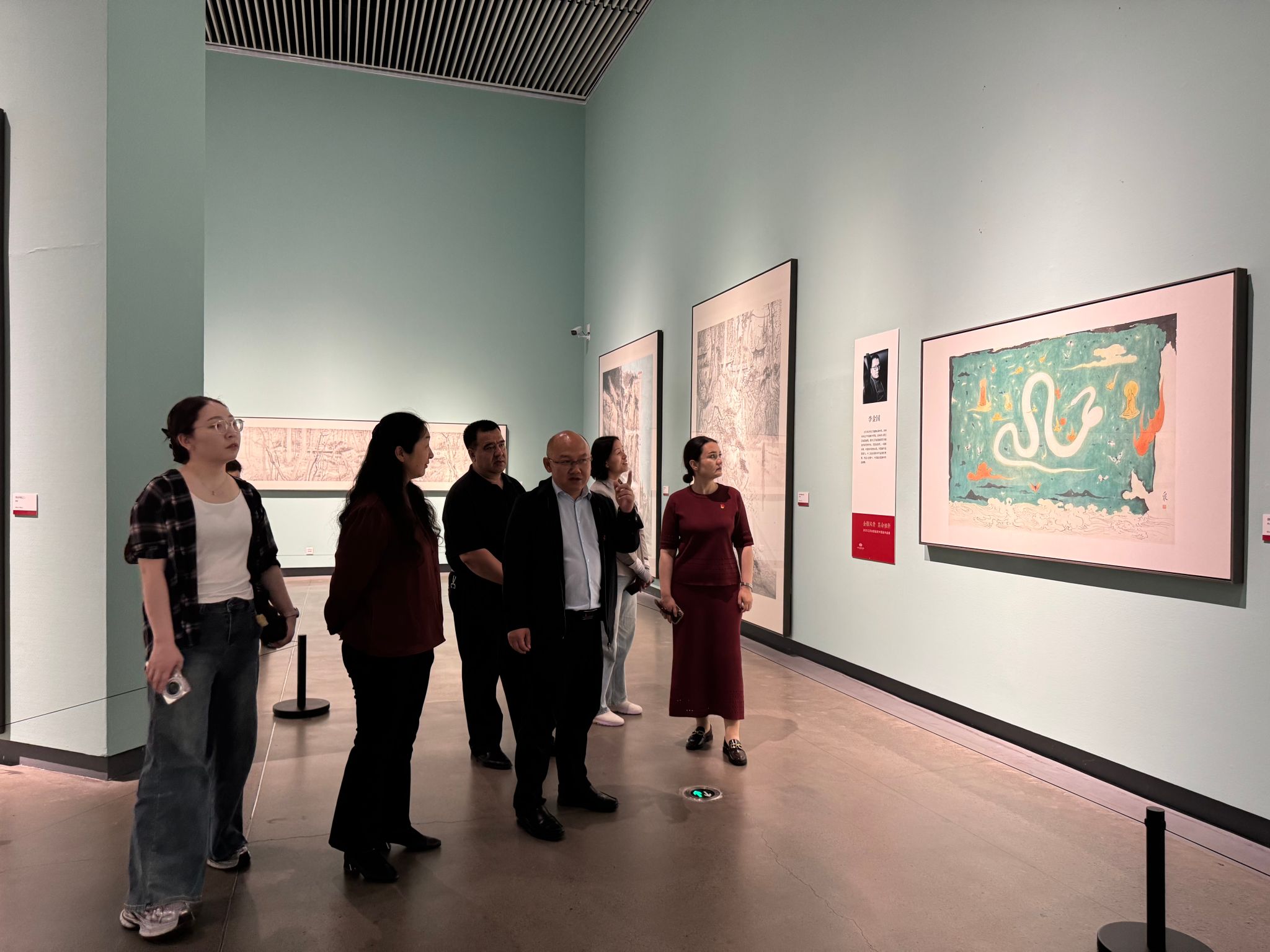 随后,党员们参观了“金陵风骨·其命惟新——2025江苏省国画院中国画作品展”。该展览画作以精湛的笔墨技艺,让党员们深切领略到中华传统绘画艺术经久不衰的独特魅力与守正创新的蓬勃生命力,进一步强化了对中华文化多元一体格局的认知。