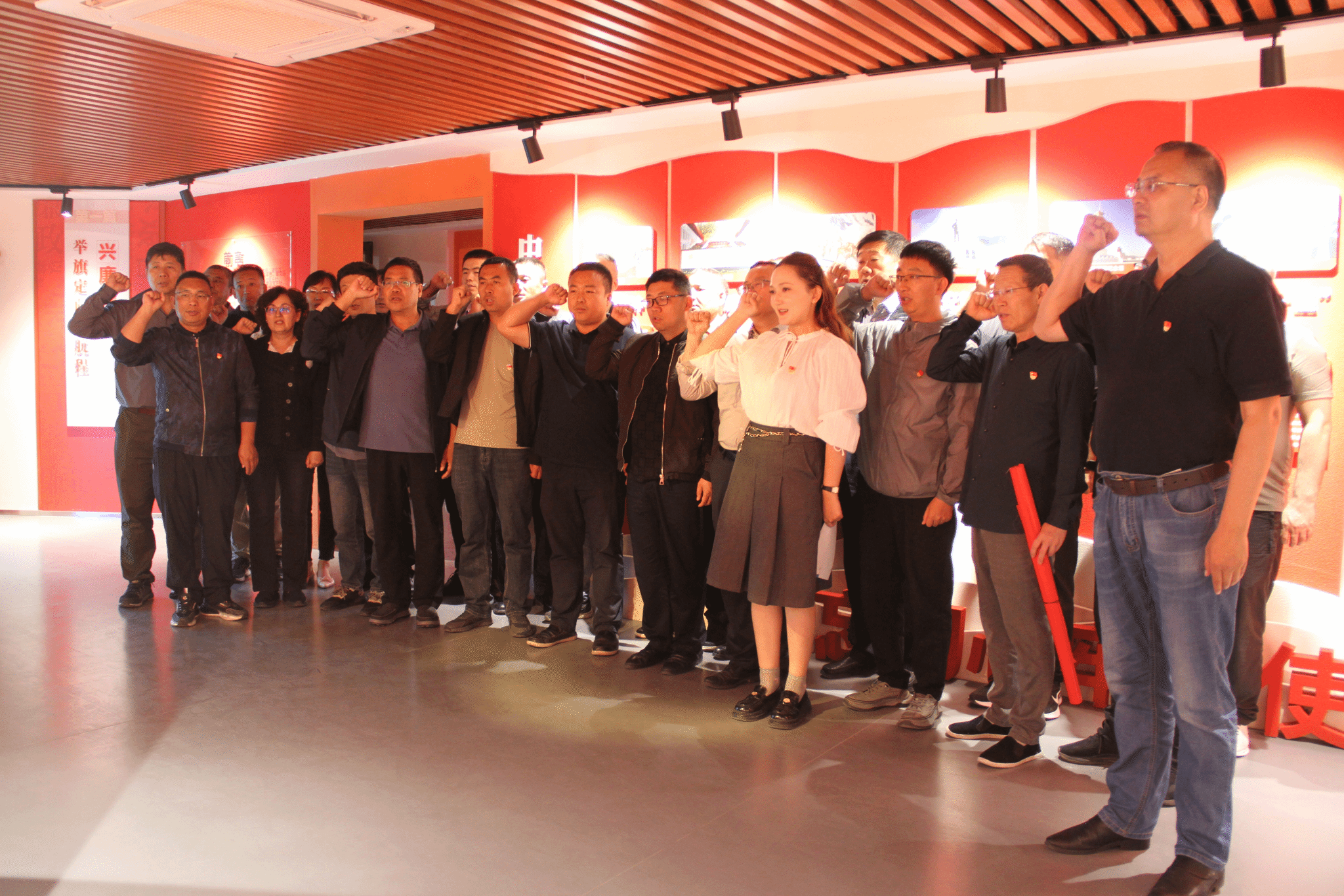 在参观展览结束后,后勤党委书记余东带领全体党员共同重温入党誓词。
