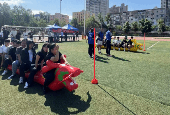 “石榴花开”旱地龙舟师生团体比赛环节