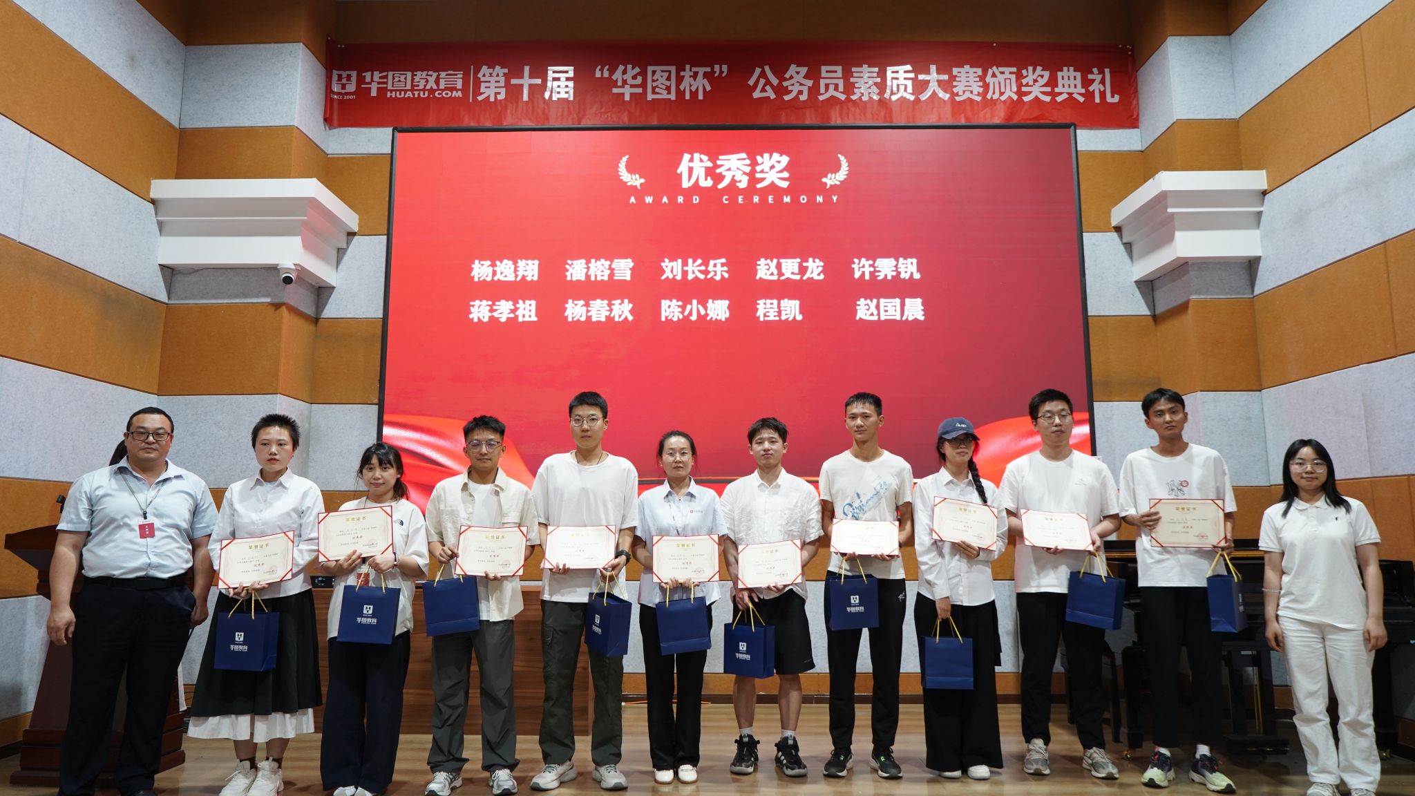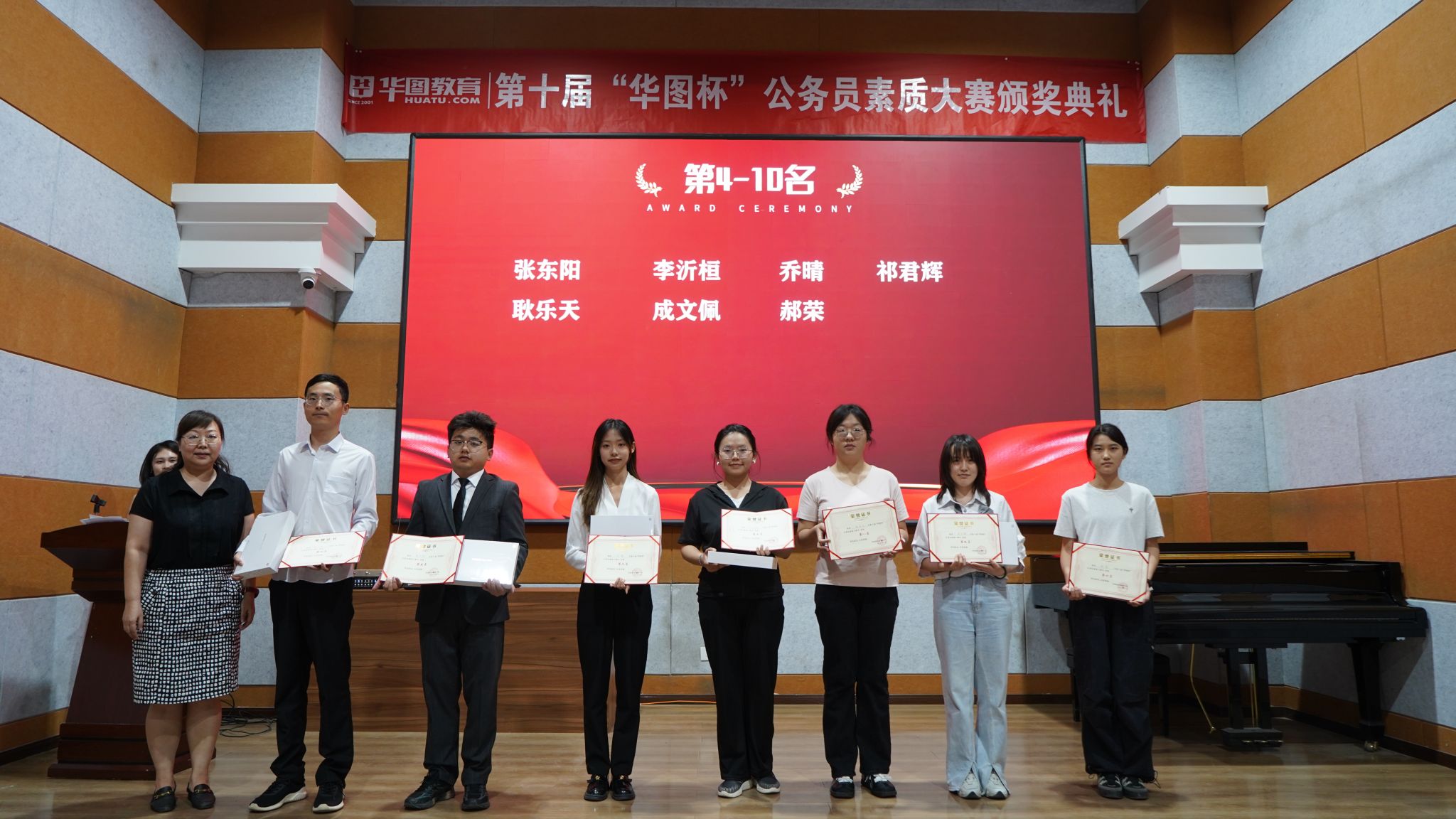 本次大赛分为报名、笔试初赛、笔试复赛、面试初赛和面试决赛五个阶段,全校748名同学报名参赛,254名同学参加了笔试模拟初赛,162人晋级笔试复赛,39人晋级面试初赛,12人晋级面试决赛,其中张东阳同学获第十届“华图杯”公务员素质大赛第四名,祁君辉同学获第十届“华图杯”公务员素质大赛第七名,3名同学进入前二十名,其余同学获得优秀奖。