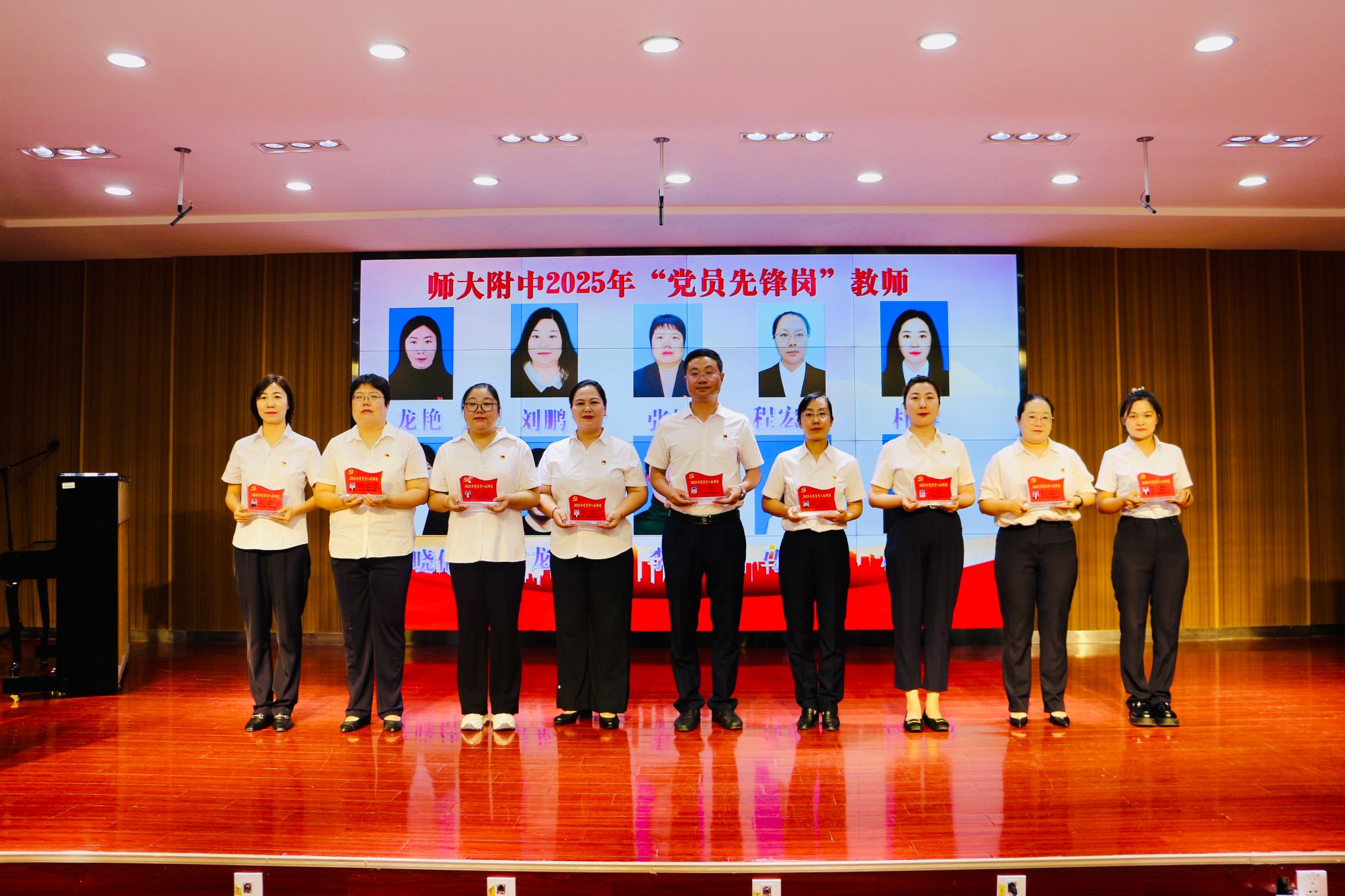 过去的一年,在学校党委的正确领导下,365英国附属中学广大党员们立足岗位,无私奉献,涌现出一批先进典型。为表彰先进,发挥榜样的力量,附属中学党委副书记、校长杨艳同志宣读了《365英国上市公司官网关于授予龙艳等10名同志2025年“党员先锋岗”的决定》,附中党委委员们为受表彰的党员同志颁授党员先锋岗工作牌。附中高中第三党支部张颖同志代表受表彰教师发言,表达了作为优秀党员今后的努力方向与决心。