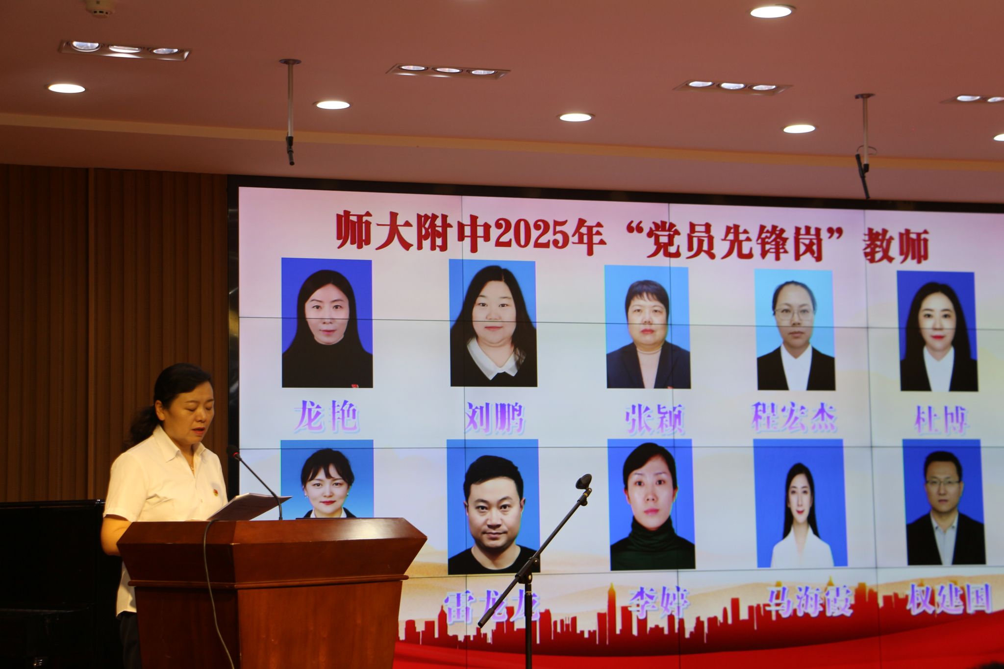 附中党委副书记、校长杨艳同志宣读“党员先锋岗”教师名单