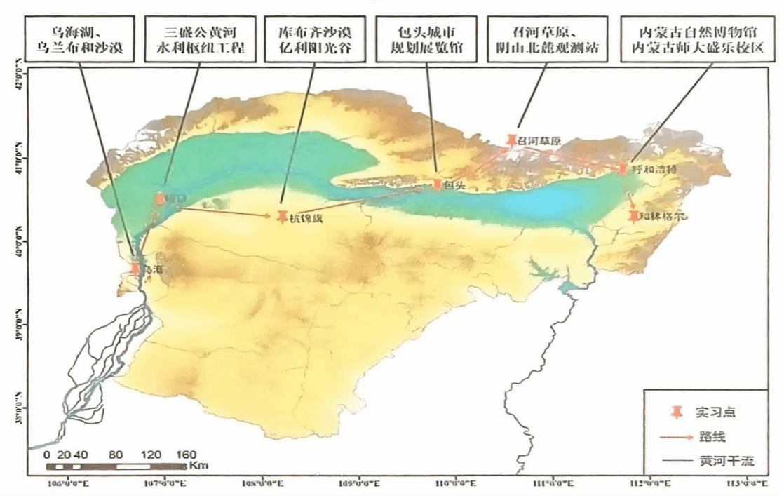 2025年全国高校地理学联合野外实习(内蒙古段)路线示意图