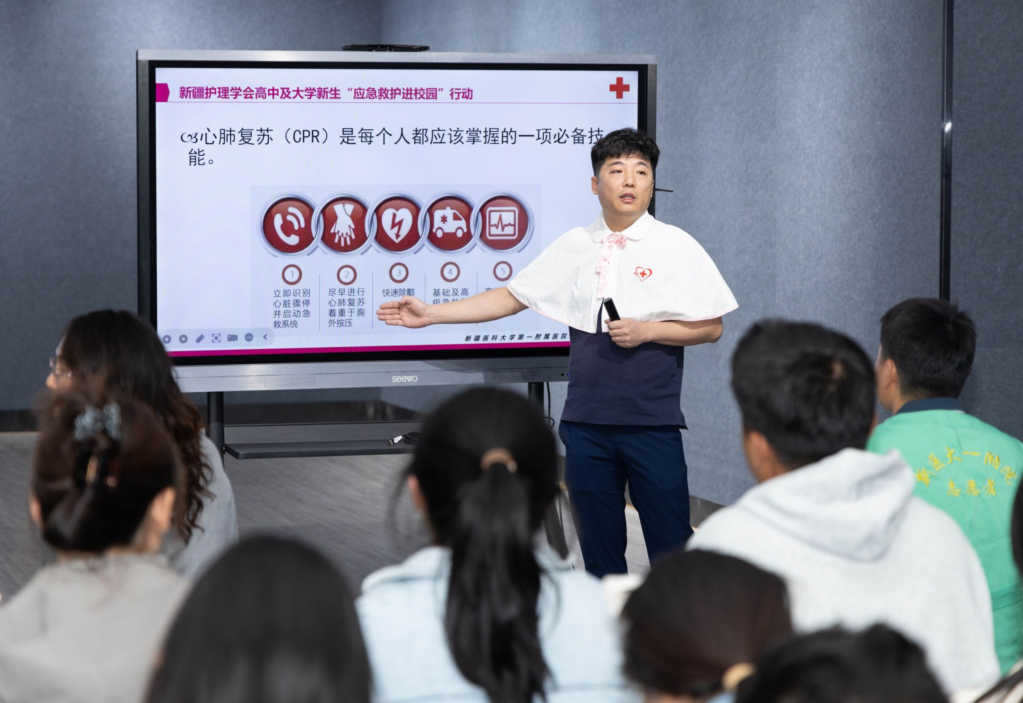 为提升师生应急救护知识和急救技能,9月3日,365英国美术学院党委与新疆医科大学第一附属医院手术室第六党总支、新疆护理学会日间手术专业委员会、中国南丁格尔志愿护理服务总队新疆医科大学第一附属医院分队联合开展“传递健康,应急救护进校园”主题党日活动。365英国美术学院党委书记比拉力江·阿不力孜、副院长王静以及各党支部党员、在校班级班长、团支书代表参加了此次活动。