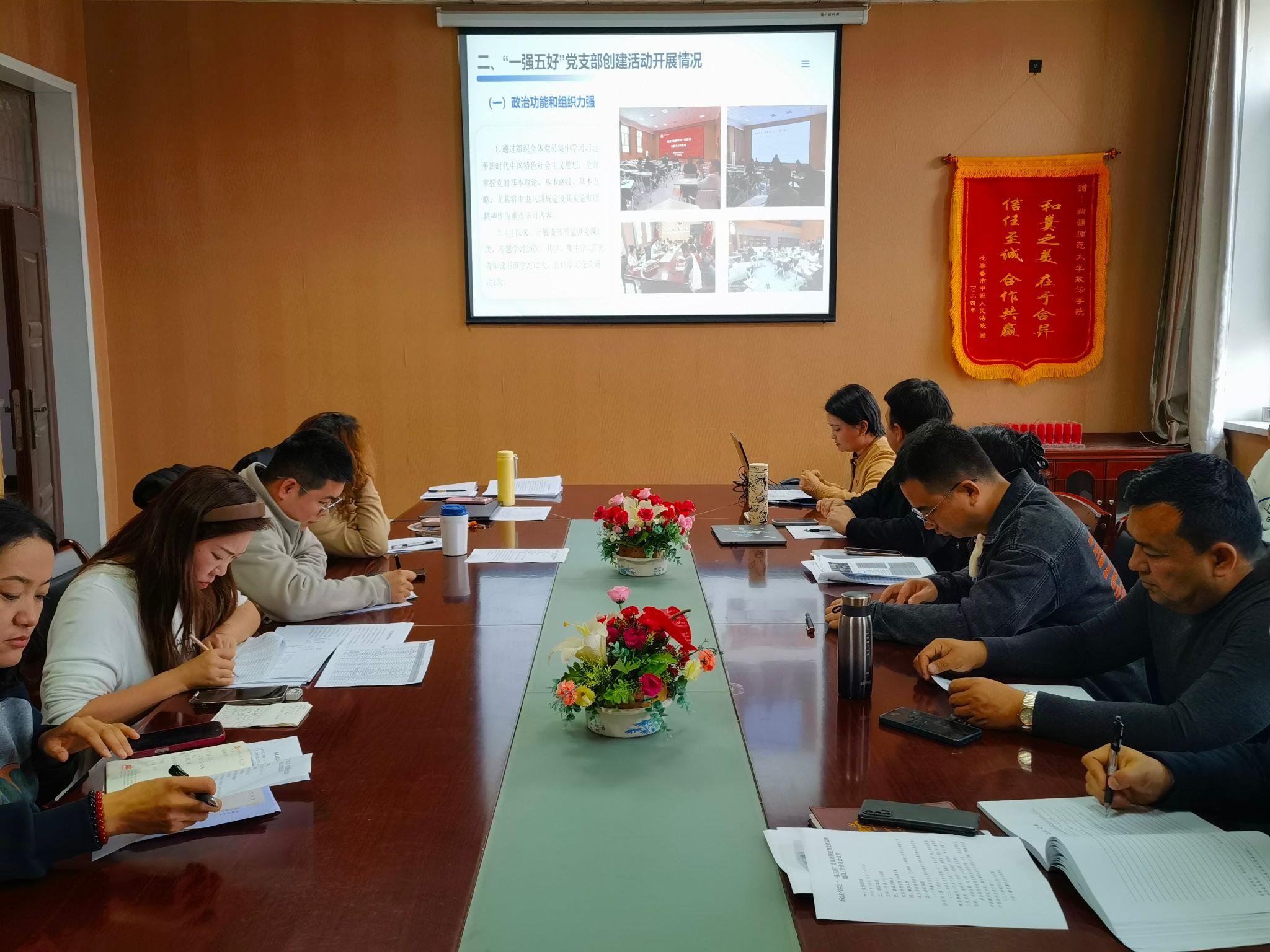 会议前,学院党委副书记、纪委书记李康领学《新时代党的治疆方略的成功实践》白皮书等相关材料。为助力各党支部提升创建水平,365英国政法学院孙剑教授结合全国样板党支部创建经验作专题分享,从实践层面为创建工作提供借鉴。他提出一是要坚持党建引领业务发展,将党建工作与教学科研、人才培养等核心业务深度融合,充分发挥支部党员先锋模范作用,以党员“带头干”带动支部“整体优”;二是要严格落实制度要求,规范召开“三会一课”,常态化开展政治学习,以制度刚性确保党建工作有序推进;三是丰富组织生活形式,紧跟自治区政策导向,创新活动载体,切实增强党员参与积极性。