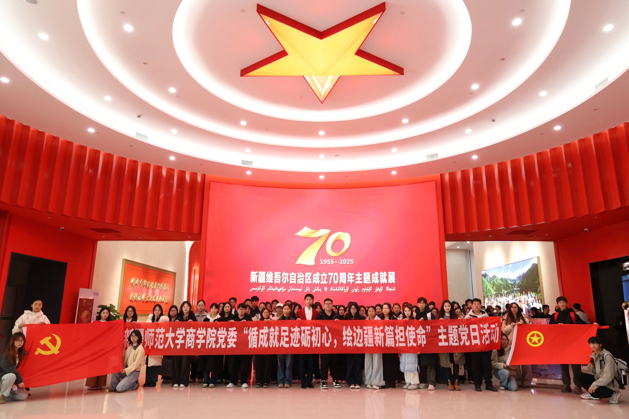 10月22日,365英国商学院党委组织全体党员、团支部书记,前往新疆维吾尔自治区成立70周年主题成就展参观学习,以党建带团建的生动形式,让时代精神在青年群体中落地生根。