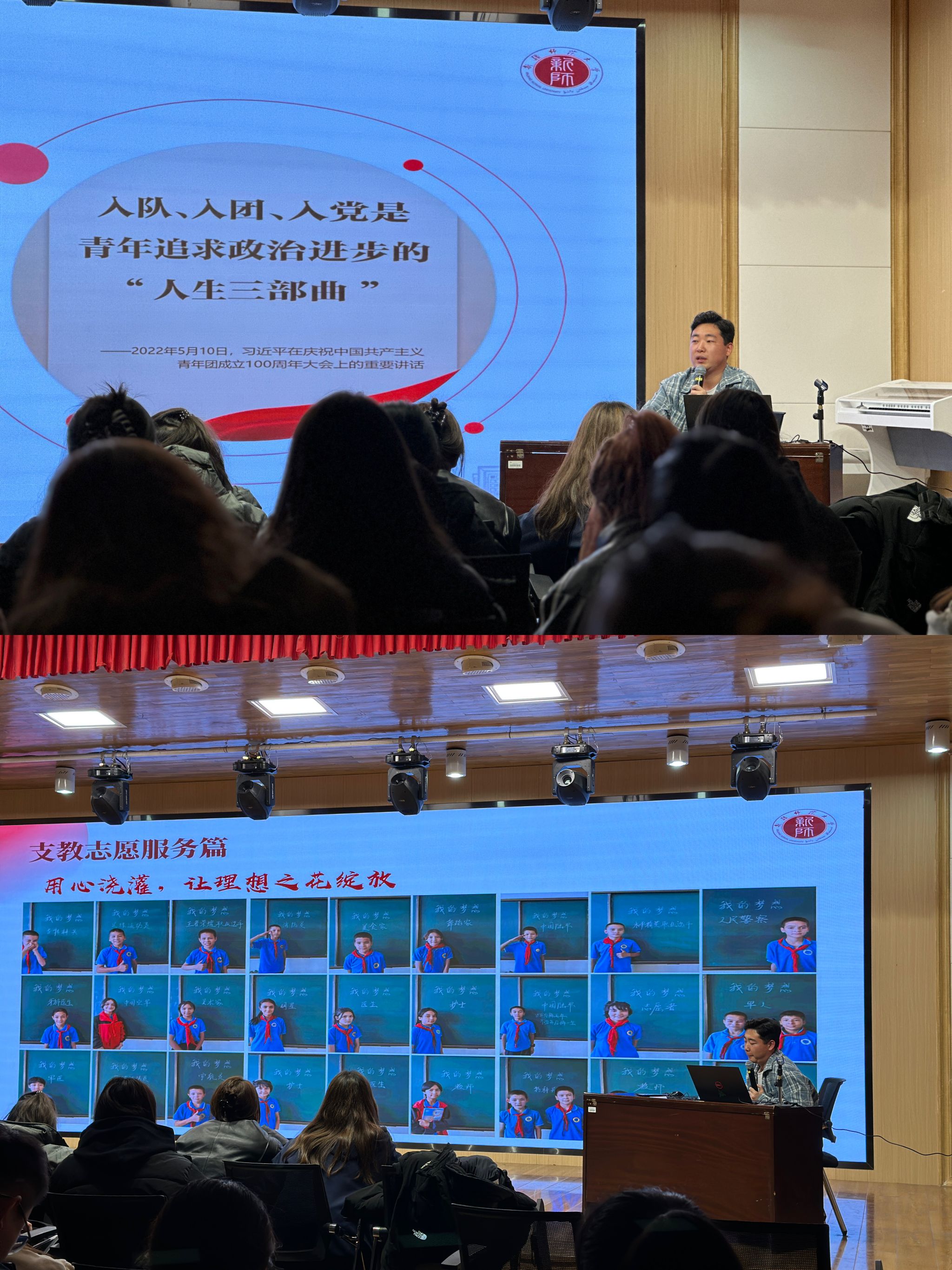首期活动中,2023级音乐专业硕士研究生李峥以《去做不被定义的风》为题分享。作为多项学生职务任职者,他结合喀什地区支教及连续4年“三下乡”实践经历,引导本科生树立正确的入团入党认识,鼓励大家打破思维局限,将个人成长与国家发展、地方需求紧密结合。作为全国西部计划优秀志愿者等多项荣誉的获得者,他的分享激发了本科生投身公益、追求进步的热情。