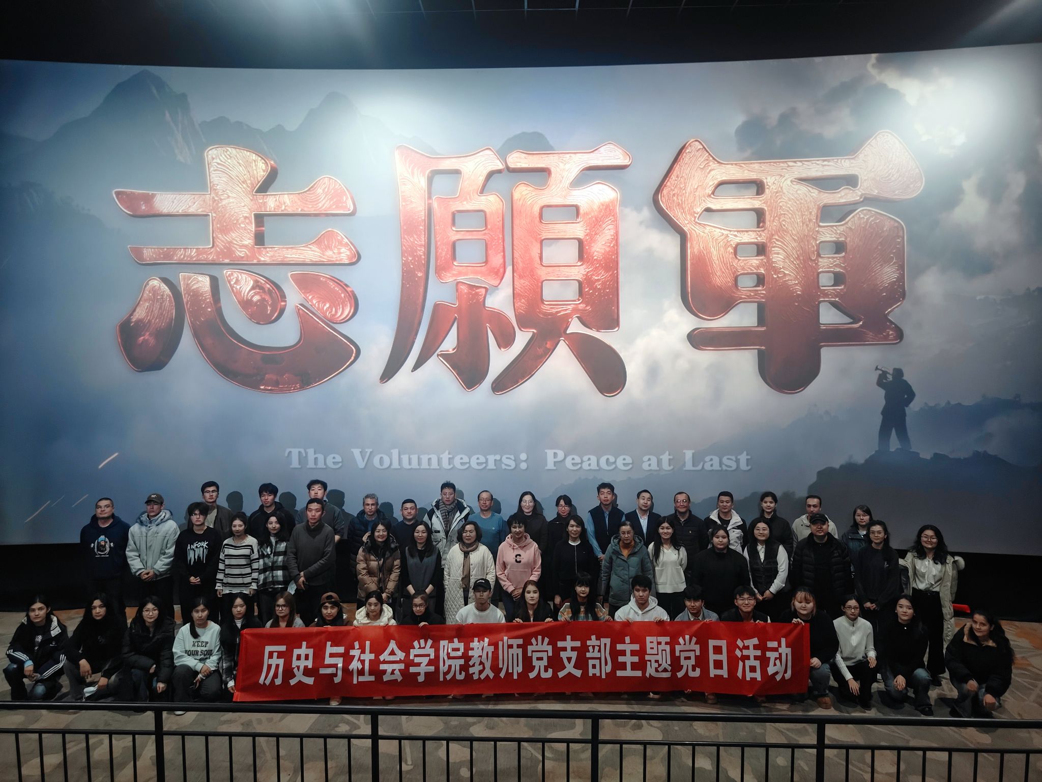 随后,全体师生共同观看了爱国主义题材电影《志愿军:浴血和平》。影片通过震撼的叙事,生动再现了抗美援朝战争中,从松骨峰阻击战的惨烈搏杀到谈判桌上的据理力争,从前方将士的英勇无畏到后方群众的鼎力支援,深刻诠释了“抗美援朝、保家卫国”的伟大意义和丰富精神内涵。观影过程中,师生们全神贯注,深深沉浸在那段波澜壮阔的烽火岁月中,无不为志愿军将士的革命英雄主义精神和深厚的家国情怀所震撼和感动。