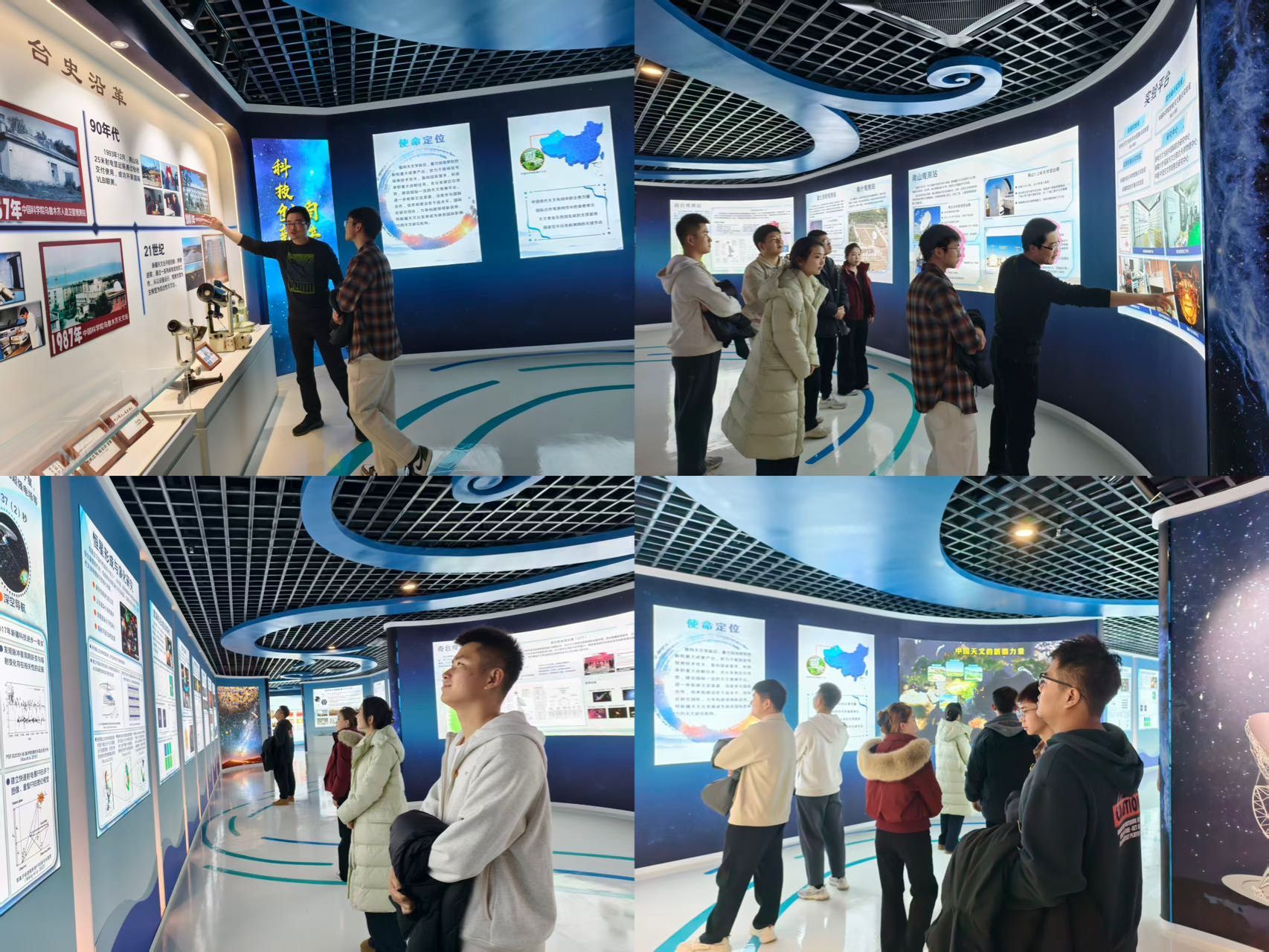 在天文台专家的带领下,党员师生们先后参观了EMC技术实验室、微波技术实验室和台史展厅。工程师王凯和蔡明辉详细介绍了超宽带馈源技术、低噪声放大器技术,其深入浅出的讲解令大家对前沿科技的实际应用有了更直观的理解。随后的台史展厅参观,则是一堂最生动的“现场党课”。跟随着讲解,师生党员们深入了解了新疆天文台与服务国家战略同频共振的发展史,尤其是老一辈科技工作者“把论文写在大地上”的边疆科学精神,引发了强烈的思想共鸣。新疆天文台厚重的奋斗历史,激励着全体师生在新时代自觉传承精神火炬,勇担科技报国的时代使命。研究生党员李嗣鸣表示,此次学习极大地启迪了科研思维,拓宽了学术视野,更坚定了将个人发展融入国家科技事业,为实现高水平科技自立自强贡献青春力量的决心。研究生党员李永琴说:“作为一名无线电物理专业的研究生,此次参观让我对求实与创新有了更深刻的理解。天文台工程师们从海量数据中探寻宇宙规律,激励我在未来的科研学习中,要以更高的标准要求自己,沉下心来打磨基本功。”
