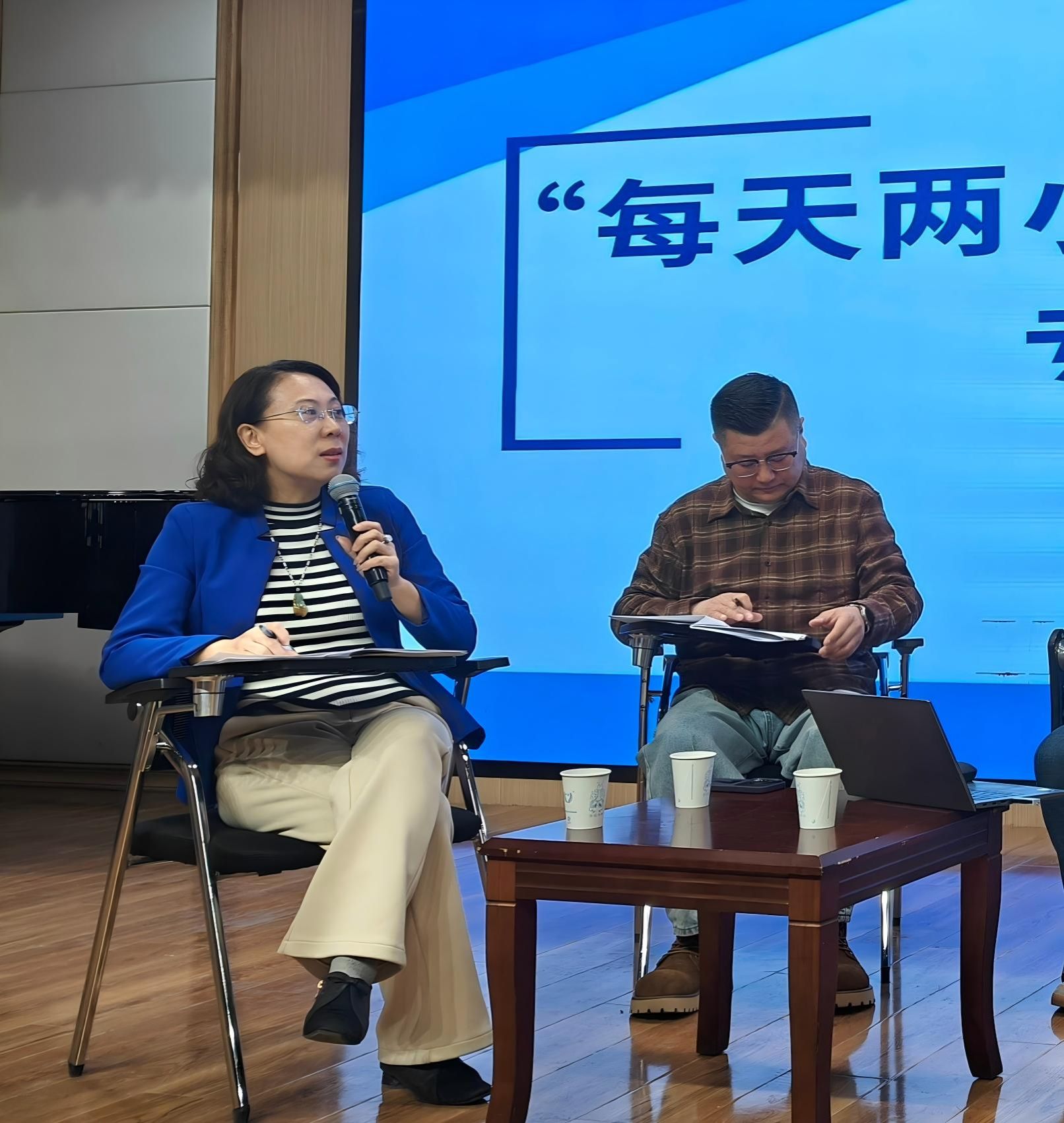 在实践案例分享环节,乌鲁木齐市教研中心教师李伟介绍了乌鲁木齐市探索经验及面临的普遍性挑战;乌市第59小学副校长魏芳分享了该校通过“晨练+体育课+大课间+课后服务”的时间整合模式、主题式体育活动设计以及科学评价机制等创新实践,构建了家校社协同共育生态。