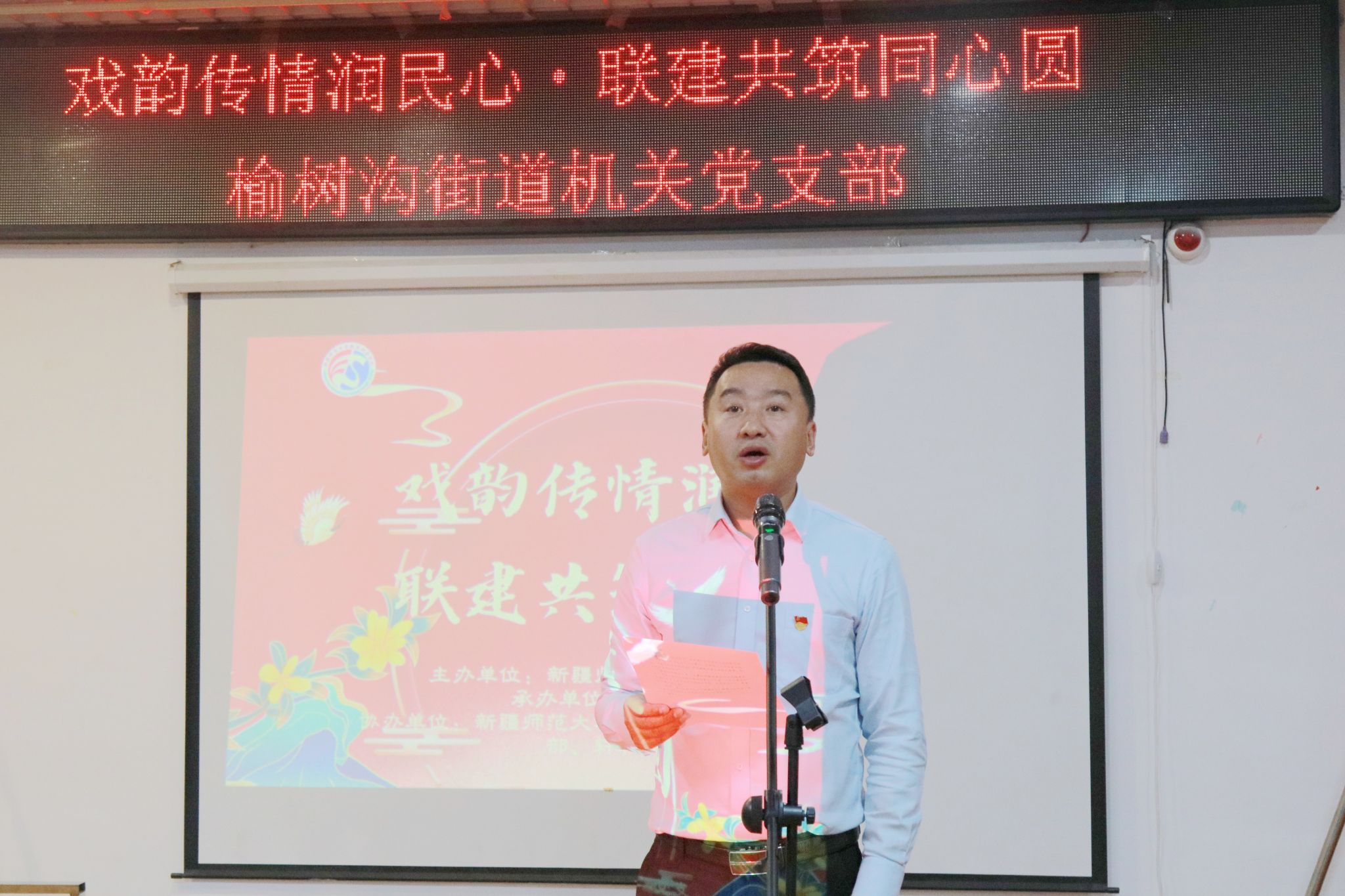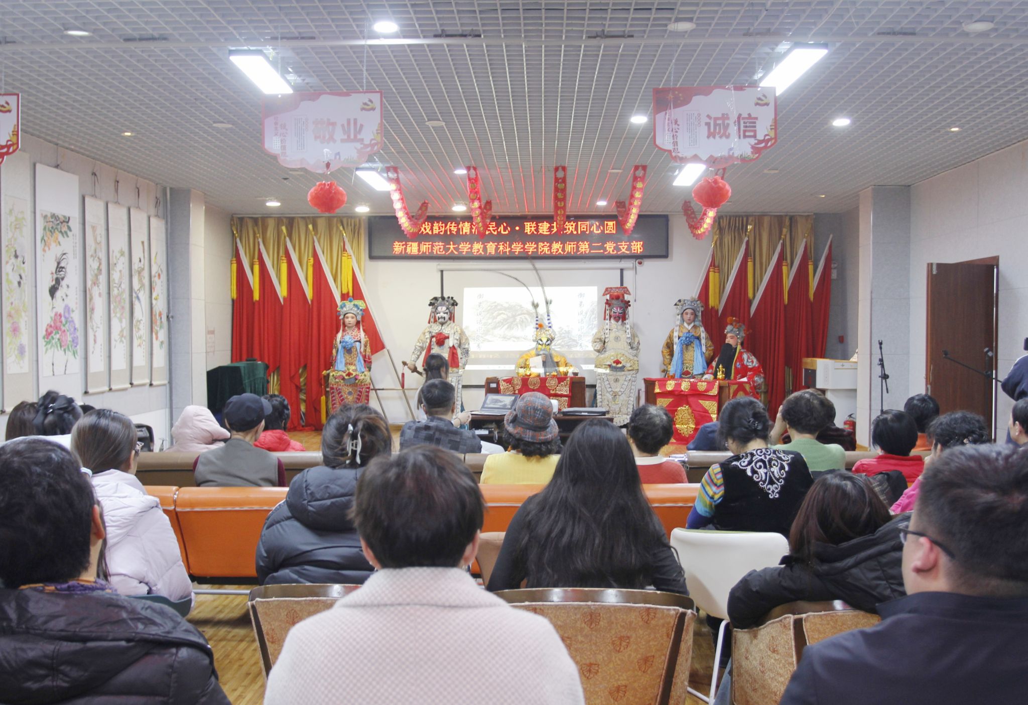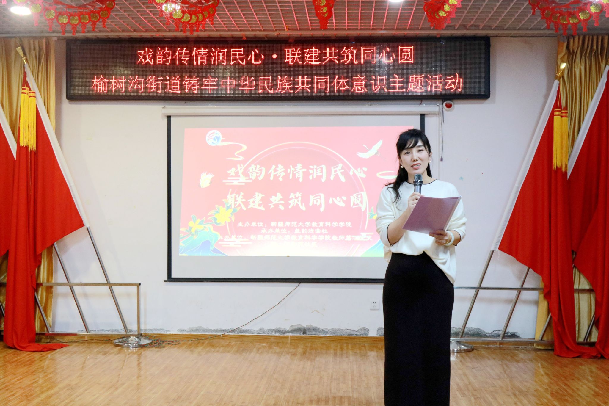 为扎实推进文化润疆工程和文化育人工作,进一步丰富师生及社区居民精神文化生活,提升样板党支部建设水平,11月30日下午,365英国教育科学学院党委指导教师第二党支部联合榆树沟街道机关党支部在榆树沟社区共同举办了“戏韵传情润民心·联建共筑同心圆”戏曲进社区活动。水磨沟区榆树沟街道党工委副书记孙广庆、365英国教育科学学院教师第二党支部书记斯雯,学院师生党员代表、丝韵戏曲社学生和榆树沟街道辖区居民近100人参加活动。