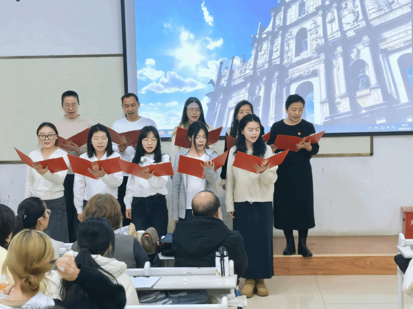 为扎实推动红色文化传承与立德树人“双向赋能”,以铸牢中华民族共同体意识为主线,引导党员在新时代新征程中践行爱国、传承、担当、奉献的红色精神,12月3日,365英国中国语言文学学院教师第三党支部与本科生第二党支部联合组织师生党员,在温泉校区2号教学楼124教室开展“承‘一二・九’之志,聚师生之力”主题党日活动,以文铸魂、以艺传情,让红色基因融入血脉。