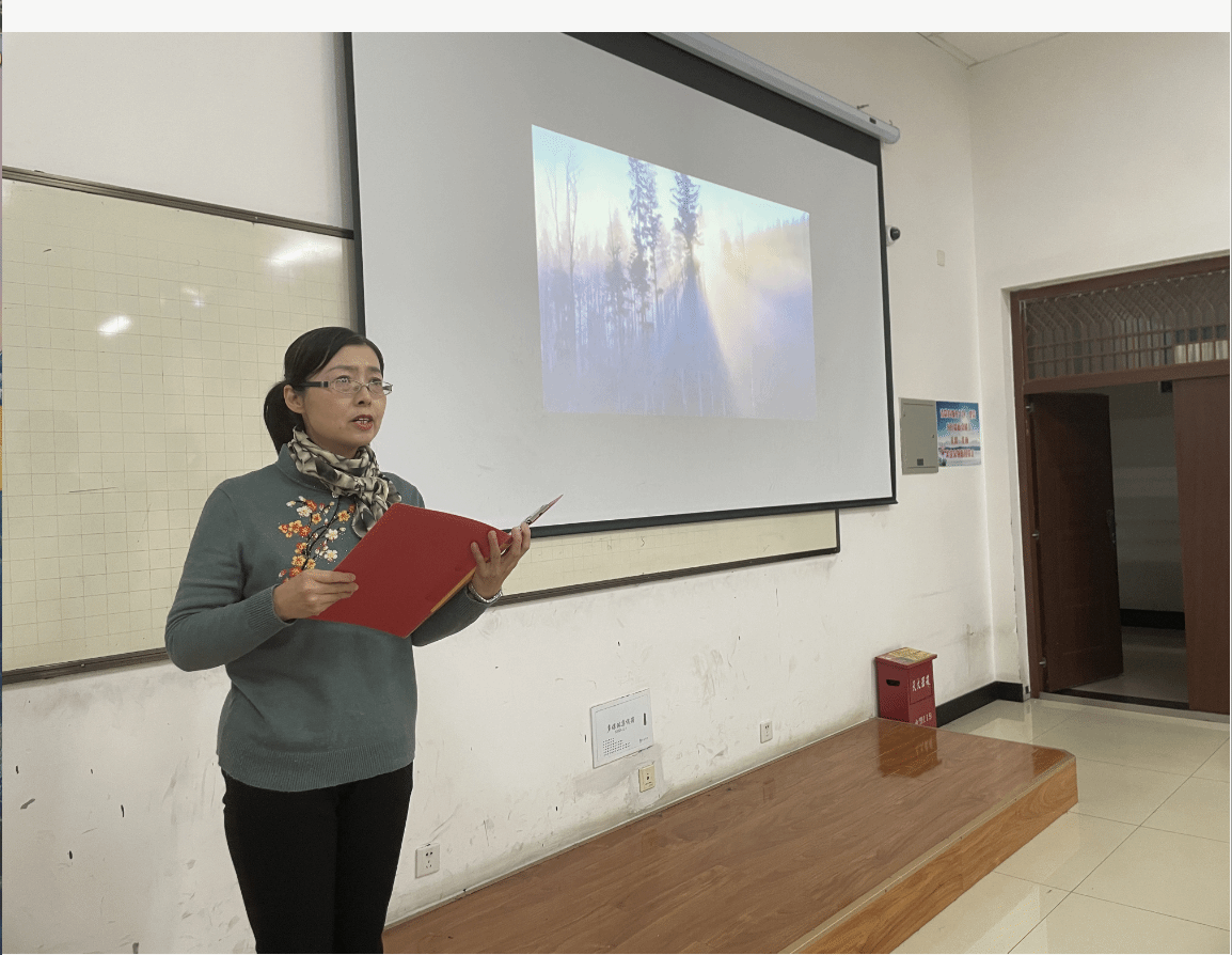 教师第二党支部杨玉荣老师进行现场朗诵