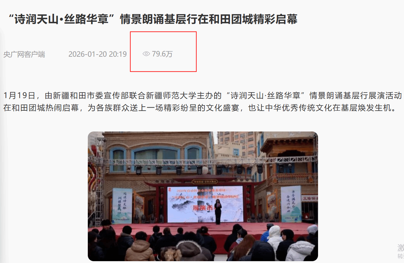 活动获央广网、石榴云等15家媒体报道,其中央广网阅读量达79.6万人次。今后,项目团队将持续深耕南疆,以鲜活载体推动文化与基层融合,为建设美好新疆注入文化动能。